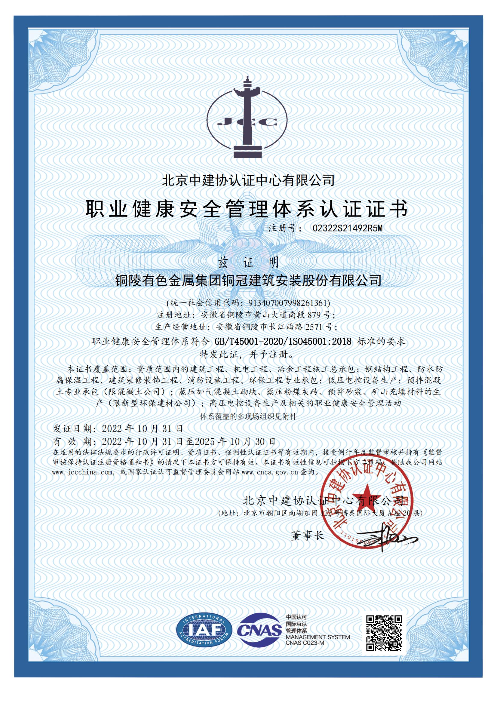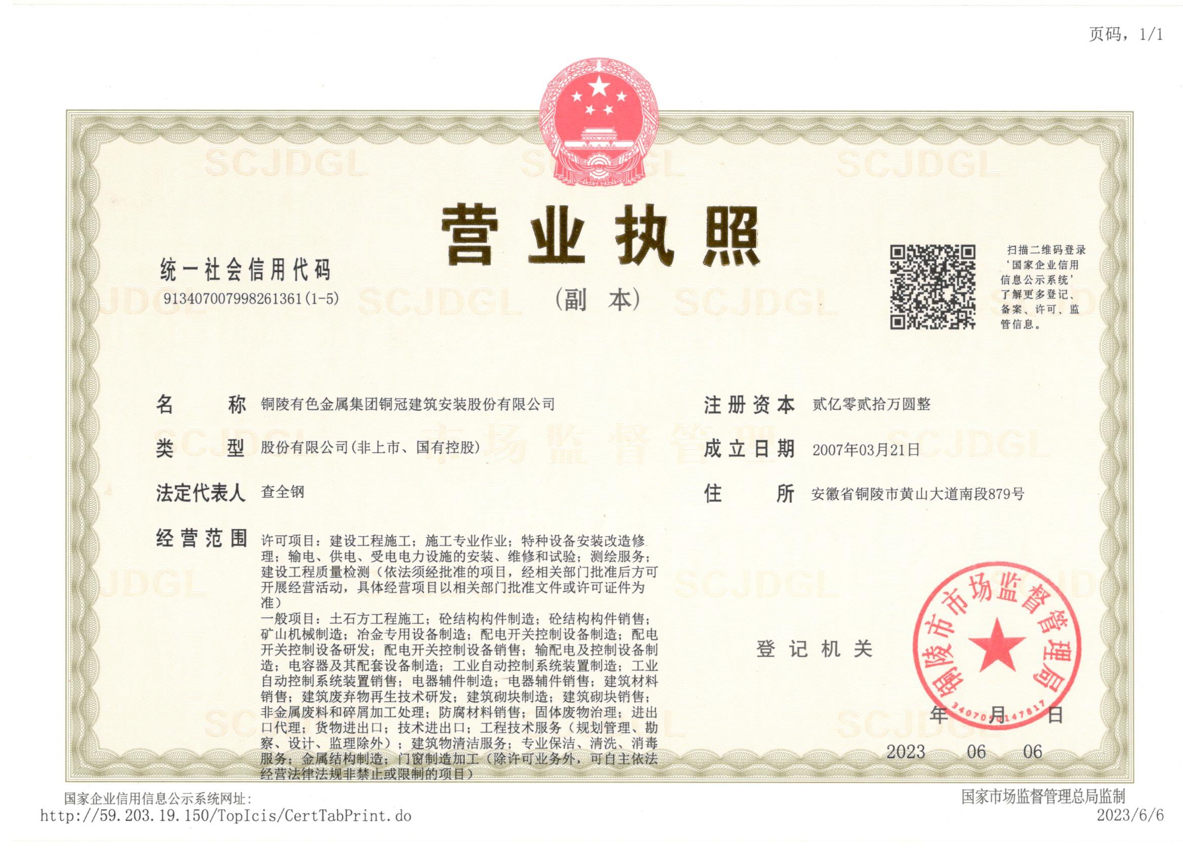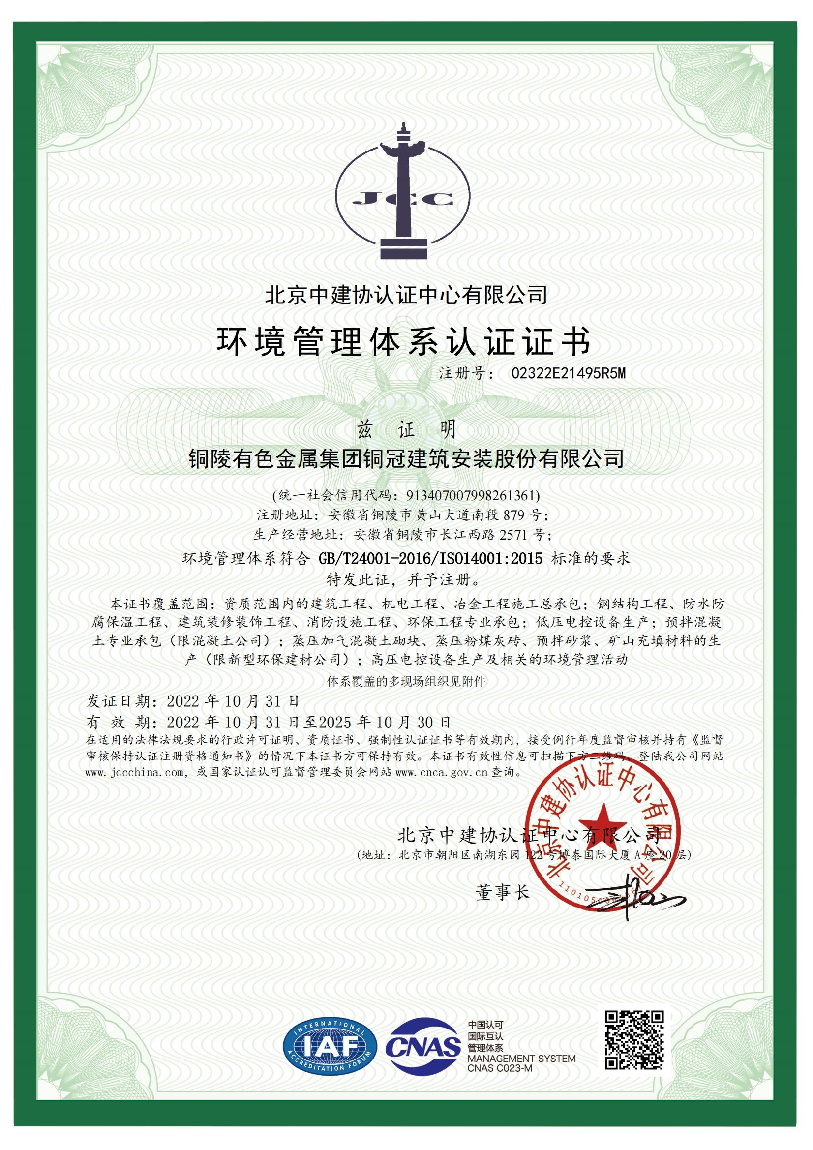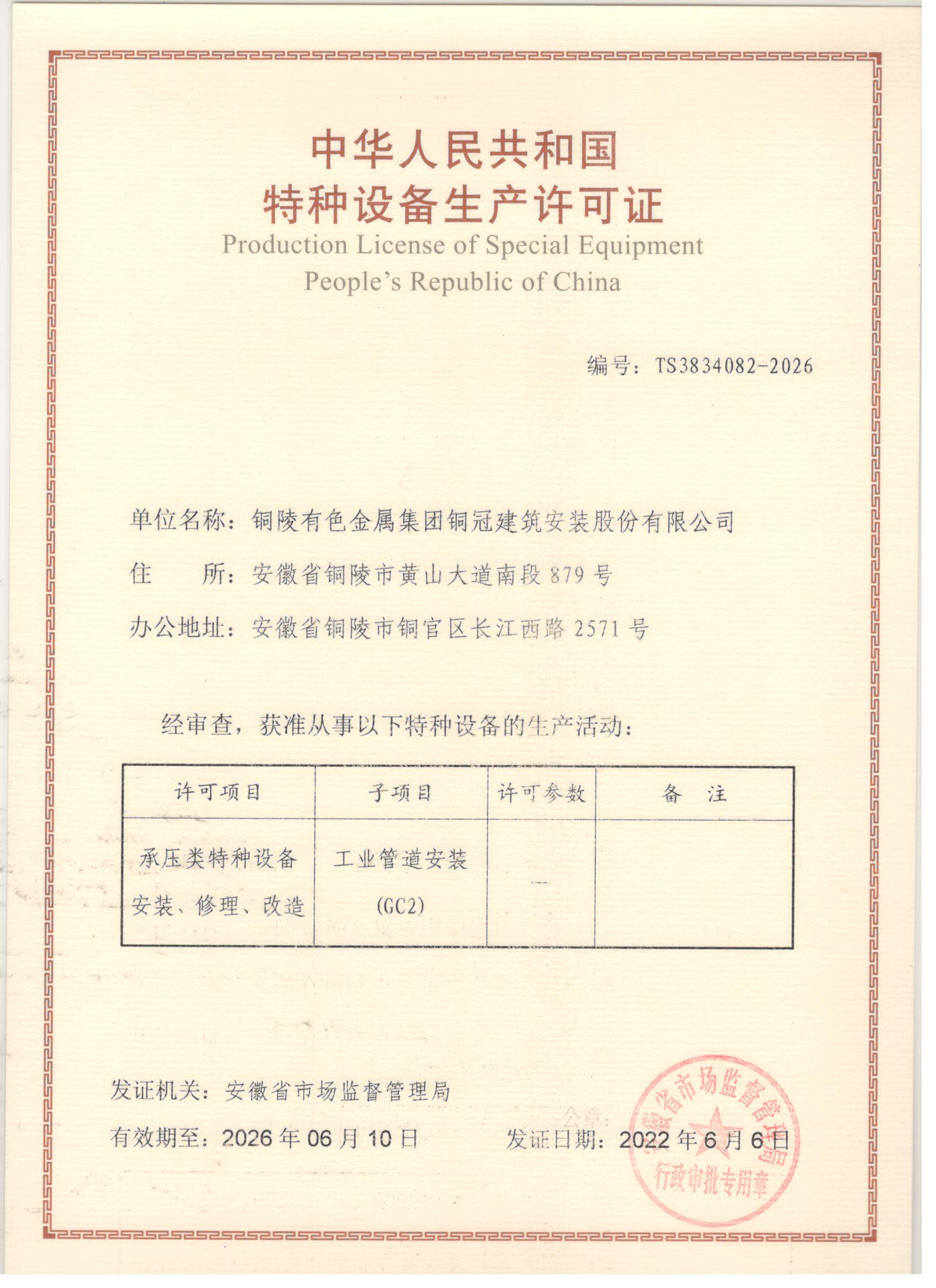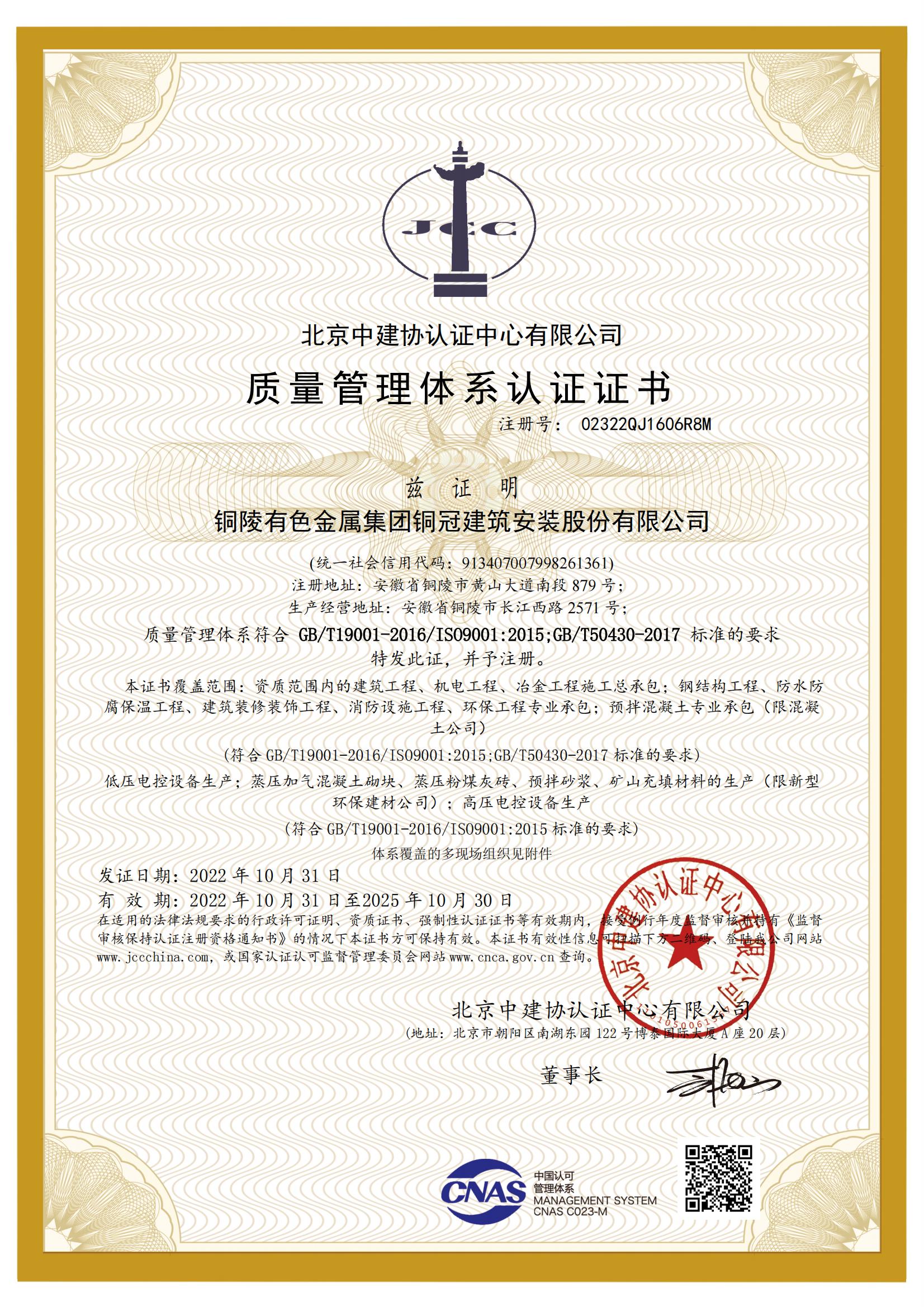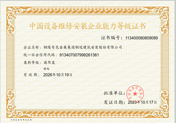 有色金屬工業(yè)建設工程質(zhì)量檢測機構資質(zhì)證書